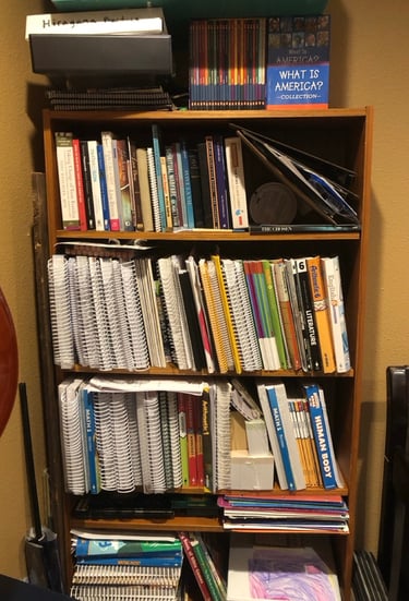 Left: Homeschooling bookshelf (current year)