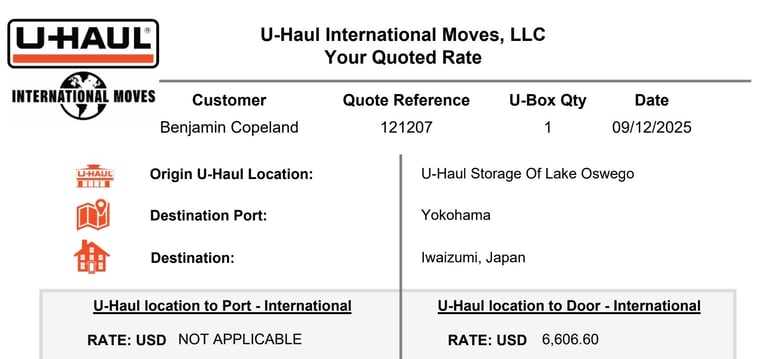 When we've raised 90% of our minimum budget, we'll be able to apply for a Certificate of Eligibility and visas, and upon receipt will need to arrive in Japan within 90 days. We'll then need to pack and store the items until the residence has been renovated and then ship them to the house, a service this shipping company can provide.