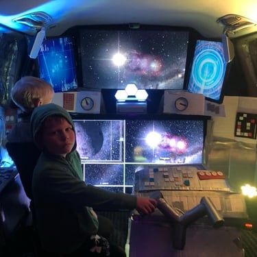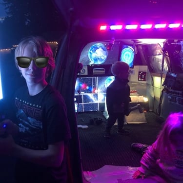 For our church's Trunk or Treat, Davidicus had the idea to convert our minivan into a Millennium Falcon-like vehicle for kids to play in and fly to other planets. He pulled it off amazingly, and I helped with the technical side of getting the screens set up, and it was a hit. I'm proud of their use of creativity to be a blessing!