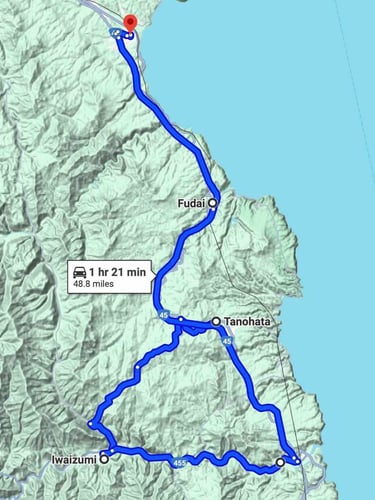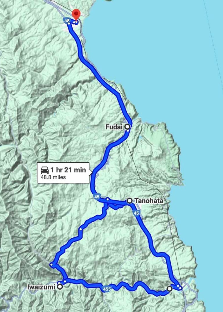 Route between Iwaizumi, Tanohata, Fudai, and Noda